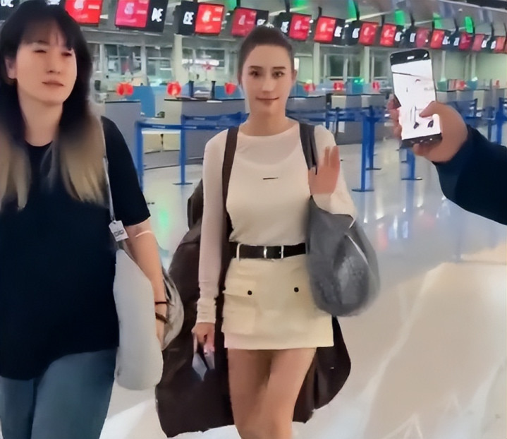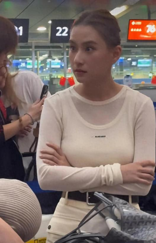 前几天又网友在机场偶遇了何女士,她穿着一身米白色的休闲套装。