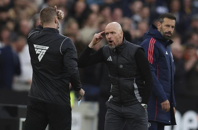 当地时间2024年10月27日,英国伦敦,24/25英超第9轮,西汉姆联Vs曼联,球场边的滕哈赫。视觉中国图
